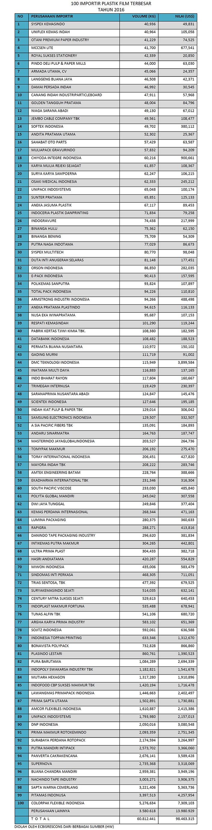 100 IMPORTIR PLASTIK FILM TERBESAR DI INDONESIA
